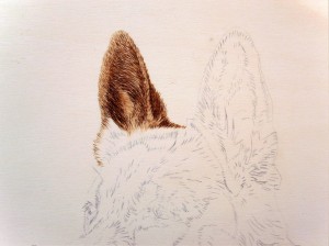 5.- El paso siguiente, por fin, será el comienzo del pirograbado como tal. Comenzaremos el trabajo intentando dejar terminada cada zona que acometamos.