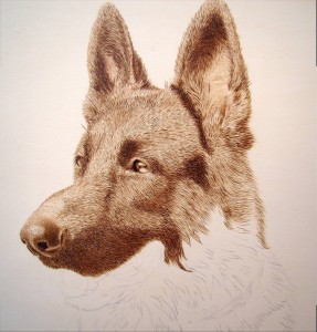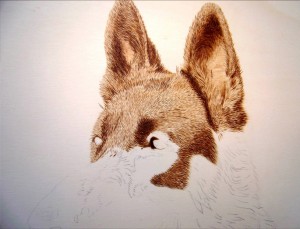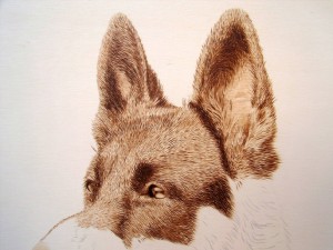 6.- Si queremos conseguir zonas más oscuras, podemos hacerlo aumentando la intensidad del pirógrafo, y volviendo sobre las partes que queramos oscurecer, o realizando varias pasadas en la misma zona hasta obtener el resultado deseado, (siempre teniendo en cuenta que conseguiremos los volumenes mediante los contrastes entre luces y sombras, es decir, zonas claras y oscuras).
